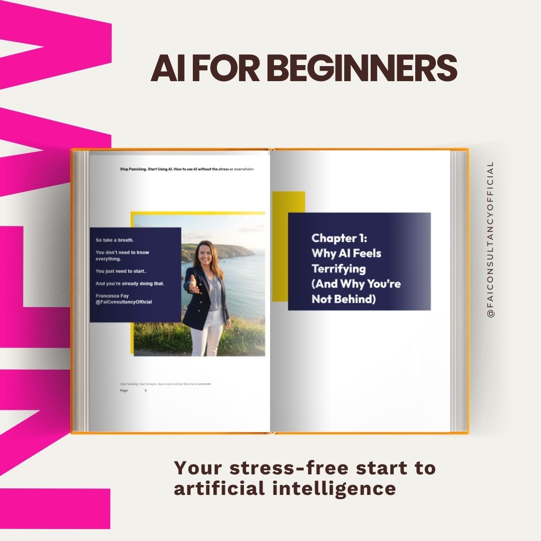 Inside, you’ll learn everything you need to feel confident using AI — without the jargon, without the pressure, and without spending hours on YouTube tutorials that make you want to throw your laptop into the sea.